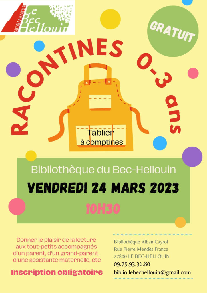 Vous êtes ici : Accueil » Vivre au Bec Hellouin » Actualités » A la bibliothèque: Le 24mars à 10h30: Racontines pour les 0-3 ans